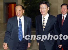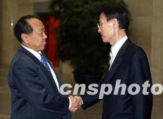 中國外交部長李肇星十日在北京與韓國外交通商部長官尹永寬舉行會談。作者:毛建軍