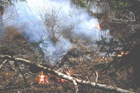 火情就是命令,接到火警后,迭部林業(yè)局和迭部縣召開緊急會(huì)議,緊急抽調(diào)人員前往救火,并成立了由迭部縣縣長楊志才、迭部縣林業(yè)局局長黃志洋為臨時(shí)總指揮的現(xiàn)場指揮部,設(shè)置滅火、后勤、偵察、醫(yī)療救護(hù)等小組,緊急投入撲救工作。在進(jìn)入崗嶺溝的不遠(yuǎn)處,記者看見濃煙彌漫,隱天蔽日,濃烈的焦糊味夾雜著絲絲煙塵撲面而來,在崗嶺溝兩邊的山坡上,不時(shí)會(huì)看到?jīng)_天火光,沿著溝底前行,沿途被大火燒毀的林地里橫七豎八躺著許多百年古松的殘根斷枝,慘狀不堪入目。