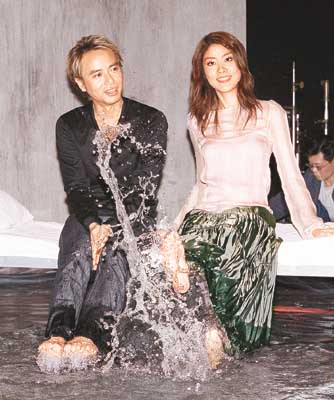 據香港媒體報道,之前陳慧琳和“華仔”合拍的那一個親密MV至今仍令人印象難忘,不知她這回和克勤的MV是否重演如上次“水中戲”般的場面呢?其實這次的MV也是“水中戲”,但不再是二人同躺浴缸內,拍攝場地是一間搭建出來的“水屋”。這首合唱歌曲寫的是兩位男女,向對方訴說自己另一半的不是,并非談情說愛內容,相信也不會出現什么“激”的場面,克勤更笑言:“我是實力派歌手嘛!”