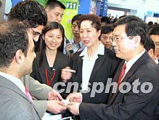 今天是第九十三屆廣交會的第四天,張德江在當(dāng)?shù)卣蛷V交會負(fù)責(zé)人的陪同下巡視了廣交會的電子電器、五金、服裝、藥品等展館。