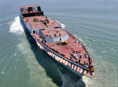圖文:印度自行研制的首艘隱形軍艦孟買軍港下水