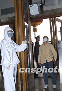 二十六日十七點,首都機場停機坪入口處,北京市交通委的工作人員正在等待一批從深圳運來的門式熱敏儀。當?shù)谝慌吲_熱敏儀終于運到時,立刻就被調走七臺,余下的十臺運到趙公口、六里橋、東直門、八王墳等十個長途客運站,連夜安裝。其他長途客運站也將盡快配置。