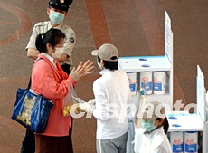 香港一些購物商場為預防“非典型病毒”傳播,紛紛設立衛生站方便市民清潔,并宣傳防止SARS傳播方法。洪少葵 攝