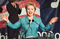 希拉里二○○四年參選總統(tǒng)﹗不,紐約州參議員希拉里-克林頓不打算宣布參加二○○四年總統(tǒng)競(jìng)選,不打算與推推搡搡﹑摩肩接踵的民主黨候選人一道參加本周末在南加州的辯論。她以守口如瓶聞名,但誰(shuí)都相信她不會(huì)參加二○○四,但會(huì)參加二○○八年的總統(tǒng)競(jìng)選。