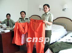 以往的“五一節(jié)”都是熱熱鬧鬧,今年卻是格外寧靜,象大戰(zhàn)前的寂靜。午夜,第一批病人將由佑安、地壇、北大等13所醫(yī)院轉(zhuǎn)入小湯山,我們負(fù)責(zé)所有病員信息的收錄及病員的轉(zhuǎn)送。此時(shí)此刻,每個(gè)姐妹心潮澎湃。夜幕剛剛落下我們便開始緊張地準(zhǔn)備了,為了確保自身的安全,我們要穿三層隔離服、隔離鞋襪,還要戴護(hù)目鏡和三個(gè)16層的棉紗口罩才能接觸病人。室外氣溫32度,第二層防護(hù)服剛一上身便被汗水緊緊吸附在身上,厚厚的口罩下鼻子和嘴貪婪地呼吸著。著裝完畢,只覺得眼前一陣發(fā)暈,汗如雨下。一位姐妹笑著說:我從小就想攀登珠穆朗瑪,今天這種感覺終于找到了。