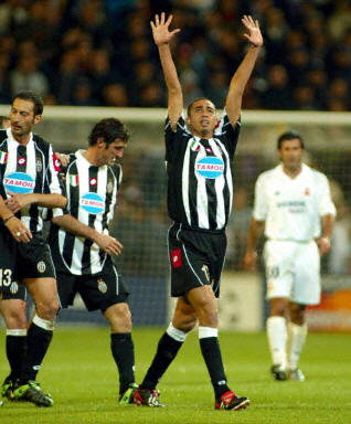 比賽僵局在第23分鐘打破,羅納爾多在禁區外得球之后,突然起腳射門,尤文圖斯門將布馮撲救不及,皇馬拔得頭籌。不過,在在上半場結束前,特雷澤蓋為尤文圖斯打入一球,將比分扳平。