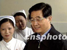 中新網5月14日電 5月11日至14日,中共中央總書記、國家主席胡錦濤近日在四川考察工作時強調,各級黨委和政府一定要從實踐“三個代表”重要思想的高度,充分認識一手抓防治非典、一手抓促進發展的極端重要性,萬眾一心抗非典,迎難而上促發展,奪取防治疫病和經濟建設雙勝利。