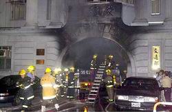 中新網5月15日電 據“中央社”報道,今天晚上約七時三十分左右,一輛載有七桶汽油的卡車沖撞臺灣“交通部”大門并 引起大火,卡車司機當場死亡,“交通部”人員全部平安逃出。