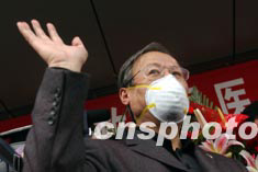 身染“非典”的著名電影導演謝飛經(jīng)過二十多天的治療,十六日從北京地壇醫(yī)院康復出院。中新社記者:武仲林