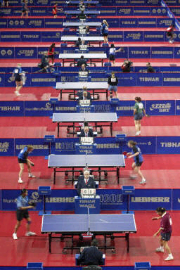 浪漫的法國人沒有在開幕式上展現他們的藝術細胞和想象力,剛承載了一天比賽的球臺依然端放在場地中央,成為最切合世乒賽主題的“道具”,以播音員播報和彩色大屏幕閃現參賽國名及國旗的方式省略了運動員入場儀式,使開幕式變得簡短而實在。但當法國乒協主席韋爾唐在率先致辭后高呼:“法國萬歲!世乒賽萬歲!乒乓球萬歲!”時,沒有人不相信,充滿激情的法國人也將使這次大賽成為一次充滿激情的賽事。