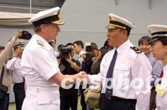 英國海軍司令斯尼爾森少將受到了中國海軍上海基地司令員許紀文少將的迎接