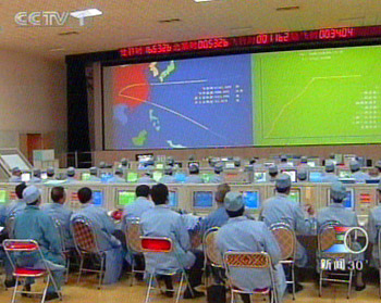 衛星發射升空后,科研人員在地面進行數據觀測。