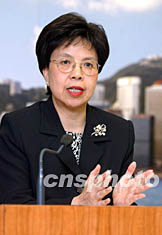 香港衛生署署長陳馮富珍5月26日公布SARS疫情,是日一名護士感染,另一名病人死亡,現時香港累計感染個案1726人,而死亡個案267人。洪少葵 攝
