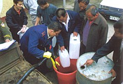 記者于5月11日乘汽車進(jìn)入天津市區(qū)時(shí),在金鐘路收費(fèi)站接受了紅外線體溫監(jiān)測器的測試,而所乘車輛也被噴灑了過氧乙酸消毒液。工作人員告訴記者,凡是來往車輛都要接受消毒,乘客必須接受體溫測試。而對于來自北京、河北、內(nèi)蒙、山西等疫區(qū)的人員還要接受重點(diǎn)檢查。根據(jù)天津市交通局的介紹,在天津的32個(gè)車站和23個(gè)高速公路出口都配備有相似的檢查站。而當(dāng)記者進(jìn)入市區(qū),在入住酒店之前,還被要求填寫了健康登記表,并又一次接受了體溫檢測。