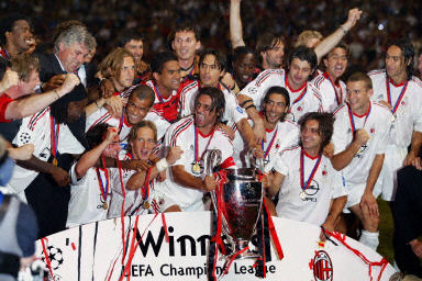中新網5月29日電 在北京時間今天凌晨進行的歐洲冠軍聯賽決賽中,意大利的AC米蘭隊在點球大戰中擊敗了意大利兄弟球隊尤文圖斯,登上了歐洲足球的最高峰。賽后,俱樂部主席、意大利總理貝魯斯科尼表揚了隊中球星們的出色表現。