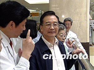 據中國中央電視臺報道,今天上午9時,溫家寶和中共中央政治局委員、國務院副總理吳儀,在中共中央政治局委員、北京市委書記劉淇,北京市代市長王岐山陪同下,來到北京兒童醫院新門診大樓。這里擁有國際一流的就診環境和診療手段,日門診量可滿足近萬名患兒就診。