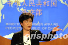 六月三日,中國外交部發(fā)言人章啟月在例行新聞發(fā)布會上就中國國家主席胡錦濤出訪等問題回答中外記者的提問。中新社記者:盛佳鵬