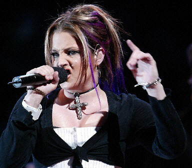 圖為貓王女兒莉薩-瑪麗-普萊斯利在現(xiàn)場演唱。