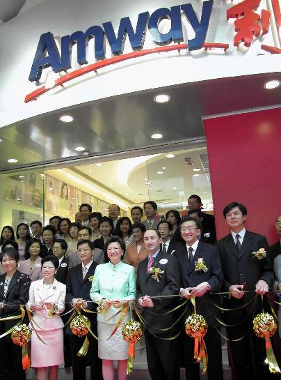 中新網6月9日電 6月7日,安利大中華地區行政總裁鄭李錦芬、香港投資推廣署助理署長賈沛年等嘉賓,在銅鑼灣共同主持美國跨國公司安利香港旗艦店的開幕禮。