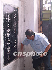 重慶云陽文物管理部門人士稱,三峽庫區年齡最大的“移民”、三國猛將張飛的“新宅”主體工程將于本月底完工,七月一日將以復建后的“舊貌”迎接新游客。圖為文物保護工作者正在為搬遷過來的石刻“做舊”。作者:鄒輝
