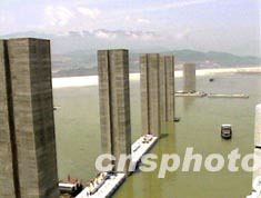 中新網(wǎng)三峽6月12日電 (全安華吳月君)今日,雙線五級(jí)船閘試通航前的最后控制性工程項(xiàng)目——船閘上引航道的導(dǎo)航浮堤全部吊裝就位,世界最大的船閘開門迎客只待“東風(fēng)”。