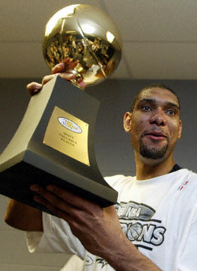 這也是馬刺隊史上第二座總冠軍,鄧肯獲選最有價值球員(MVP)。鄧肯毫無意外拿下決賽最有價值球員獎,他在這個系列戰中,平均攻下二十四點二分,抓下十七個籃板,送出五點三次助攻以及五點三次阻攻,其中季后賽總阻攻數一百三十一次,刷新NBA季后賽紀錄,而今天單場八次阻攻,也追平了總冠軍賽單場阻攻紀錄。