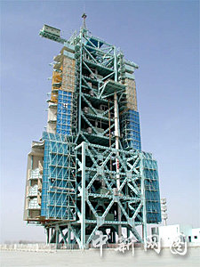 中國載人航天發射場上倚天聳立的發射塔架。中新社記者 孫自法 攝