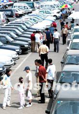 六月中旬,北京市民攜家帶口在北方汽車市場選購汽車。車市層出不窮的新面孔和經濟型轎車的價格一降再降,極大地刺激著消費者的購車欲望,使北京各汽車銷售市場又出現年初如火如荼景象。中新社記者:王麗南