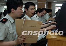 解放軍小湯山醫院的所有SARS康復患者將在20日出院。18日,院方緊急征調正在隔離區休整的年輕醫護人員冒著高溫酷暑向北京SARS數據庫輸入收治的六百多名患者資料。中新社記者:任晨鳴