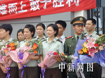 今天出院的病人,最大的65歲,最小的15歲。他們顯得特別興奮,一出院門就拼命向我們揮手,我把手里的鮮花獻(xiàn)給了一個(gè)女孩,她用不太標(biāo)準(zhǔn)的手勢(shì)向我敬了一個(gè)軍禮,“謝謝解放軍,希望你們也能趕快回家和親人團(tuán)聚。”她微笑地?fù)P起了臉,在陽(yáng)光下洋溢著健康的一張娃娃臉,我喜歡這張臉。