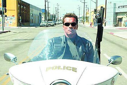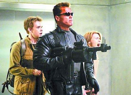 《終結者3》7月2日上映,這之前有記者采訪了男主角施瓦辛格,見到他時,他正在和他四歲的兒子克里斯多佛在飯桌上玩國際象棋。當時施瓦辛格在棋局中處于劣勢,看到我們,他干脆將木質棋盤放到一邊,并搬來幾張椅子,還派發飲料,很開心地接受采訪。在他舒服地坐在凳上的時候,卡其布短褲下膝蓋上的疤痕清晰可見。在整個采訪的過程中,克里斯多佛會不時地爬到他爸爸身上扯他的耳朵,不過施瓦辛格也不在意,繼續我們的談話,談他拍《終結者3》的事情。談話中,施瓦辛格說:“我曾說過,我會回來的,現在,我回來了。”采訪最后,他還強調“有人說我老了,我會證明給他們看,我像20年前一樣棒。”