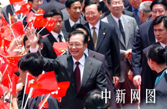 溫家寶抵港熱情招手。參加香港特別行政區成立六周年慶祝活動的中國國務院總理溫家寶,6月29日中午乘專機抵達香港國際機場,登車前溫家寶特意向記者招手致謝。中新社記者錢興強攝
