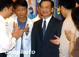 相關(guān)報(bào)道:圖:國(guó)務(wù)院總理溫家寶熱情問候記者 (2003-06-30 14:11:09)