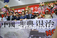 今年春天,北京突發“非典”疫情,首都旅游及相關產業遭受到了災難性的打擊,來京的海外游客數量大幅下降,經濟損失十分嚴重。為了盡快復蘇旅游市場,北京市旅游局制定了一系列救市措施,其中就包括今天的第一團歡迎儀式。