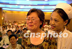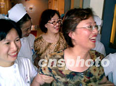 中新社廣州七月二日電 (記者王華)廣東省最后三名非典病人今天上午全部康復出院,患者與醫護人員相互擁抱慶賀。廣東省副省長雷于藍等有關負責人參加了歡送會。