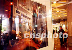 香港一家購(gòu)物商場(chǎng)展出醫(yī)護(hù)人員醫(yī)治SARS病人的照片,提醒市民不可掉以輕心,預(yù)防病毒死灰復(fù)燃。洪少葵 攝