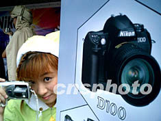 七月四日下午,在廣州太平洋數碼節上,尼康數碼寶貝活躍在廣州街頭,為尼康系列數碼相機促銷。作者:陳文