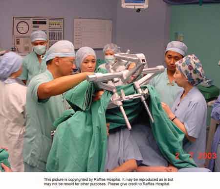 7月2日,新加坡主刀醫(yī)生在手術室演練手術的情景