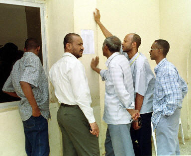 圖為遇難航班旅客的親屬在蘇丹航空公司查看遇難者名單
