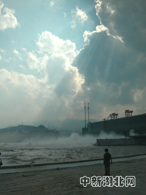 圖:三峽工程大壩上空出現“光瀑奇觀”