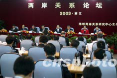 2003年海峽兩岸關(guān)系論壇十七日在云南麗江開幕,來自海峽兩岸、香港、澳門以及海外的百余位專家學(xué)者出席會議,這是“非典”疫情雙解除后,海峽兩岸間首次舉行的大規(guī)模交流活動。中新社記者:毛建軍