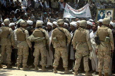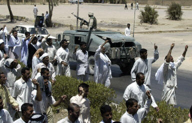 示威者在納杰夫市內一主要清真寺門前集合,步行到由美國海軍陸戰隊把守的市政廳門前,并高呼“不要美國”等口號。有些憤怒的伊拉克人還向美國士兵投擲石塊,美軍沒有開槍還擊。