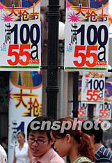 諧音“大搶劫”的商家促銷廣告七月出現在北京繁華商業區。盡管盛夏不是購物旺季,但商家為了挽回非典造成的損失,紛紛加大促銷力度。中新社記者:張煒
