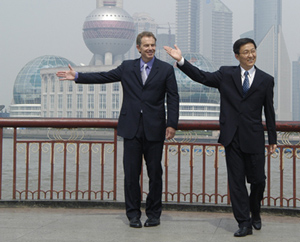 中新網7月23日電 英國首相托尼·布萊爾于2003年7月22日下午對上海進行了訪問。布萊爾此行的重點集中在商業性事務,旨在增進英國對上海乃至中國經濟發展的推動作用。這是布萊爾第一次與上海新一代領導層的接觸。雙方探討了加強英國與上海之間日益增長的合作關系。