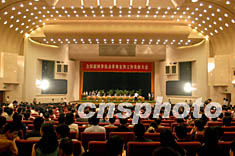 中國新聞界抗擊非典宣傳工作表彰會二十三日在北京人民大會堂舉行,會議對非典期間的新聞宣傳工作給予肯定,并表彰一批先進單位及個人。中新社記者:張宇
