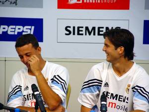 7月30日下午1時,皇馬在紅塔基地召開了第六天的例行新聞發布會,出席新聞發布會的皇馬球員有貝克漢姆、索拉里、塞拉德斯、塞薩爾。新聞發布會上,貝克漢姆再次成為媒體追逐的焦點,其他球員則顯得有些無所事事。圖據云南日報網站