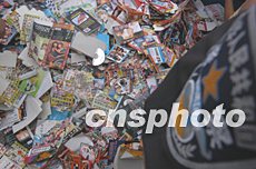 北京警方七月三十日將今年收繳的三十萬冊淫穢盜版圖書予以銷毀,以此表明進一步加大本市“掃黃”“打非”力度的決心。中新社記者:任海霞