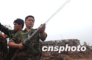 圖:辛集煙花廠爆炸消防人員趕赴現場滅火 (2003-07-30 10:06:46)
