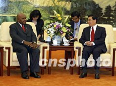 中國國家主席胡錦濤三十日在北京會見巴布亞新幾內亞總督阿托帕爾。中新社記者:滿會喬