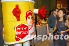 由香港貿(mào)易發(fā)展局主辦的香港美食博覽會,八月五日在香港舉行新聞發(fā)布會,超過170多家來自香港、內(nèi)地及海外的食品制造商,將展銷食品和飲料以及中醫(yī)藥健康食品。圖為發(fā)布會上參展商促銷。中新社記者:錢興強